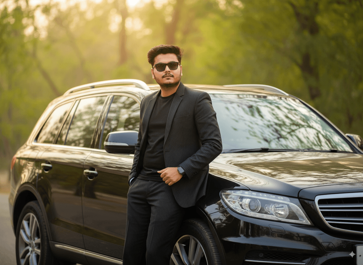 Cinematic Portrait of a Confident Man: Luxury SUV Elegance