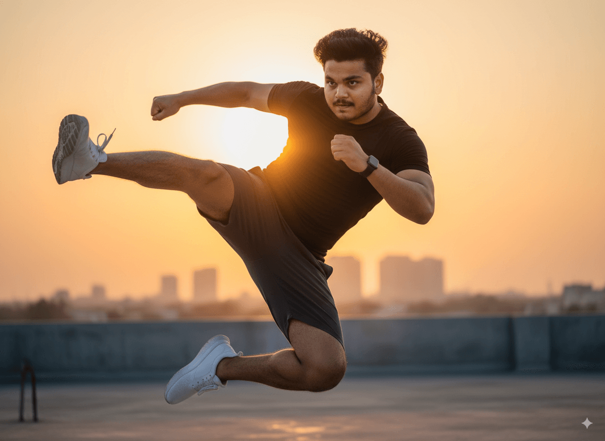 Dynamic Action Shot AI Prompt – Athletic Hyper-Realistic Portrait