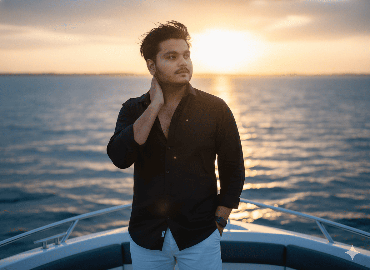Sunset Boat AI Portrait Prompt — Calm, Classy, and Cinematic