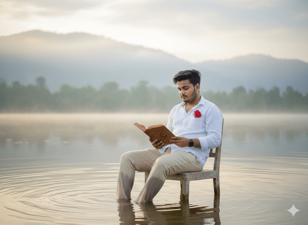 Cinematic Lake Portrait AI Prompt – Create a Dreamy Dawn Photoshoot Look