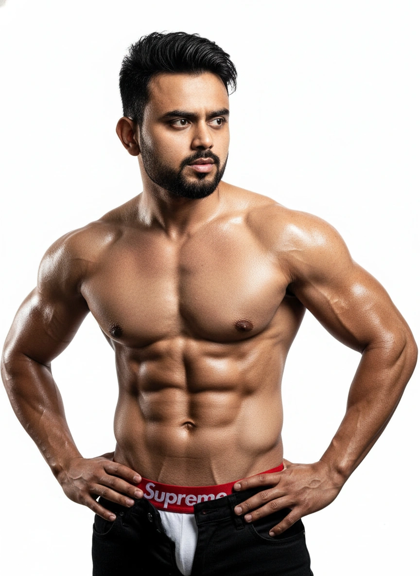 AI Portrait: Muscular Asian Man, Studio Fitness Model