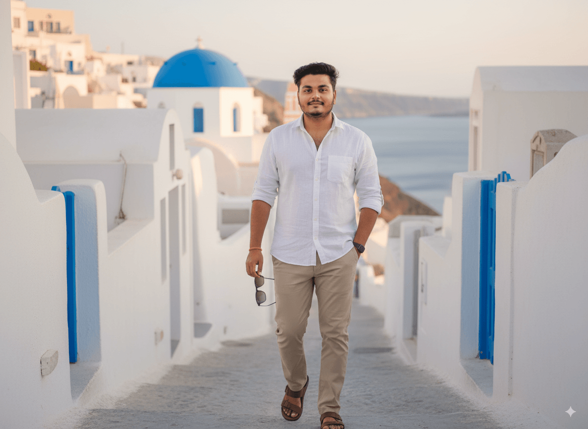 AI Photoshoot in Santorini: Transform Your Selfie into a Travel Portrait