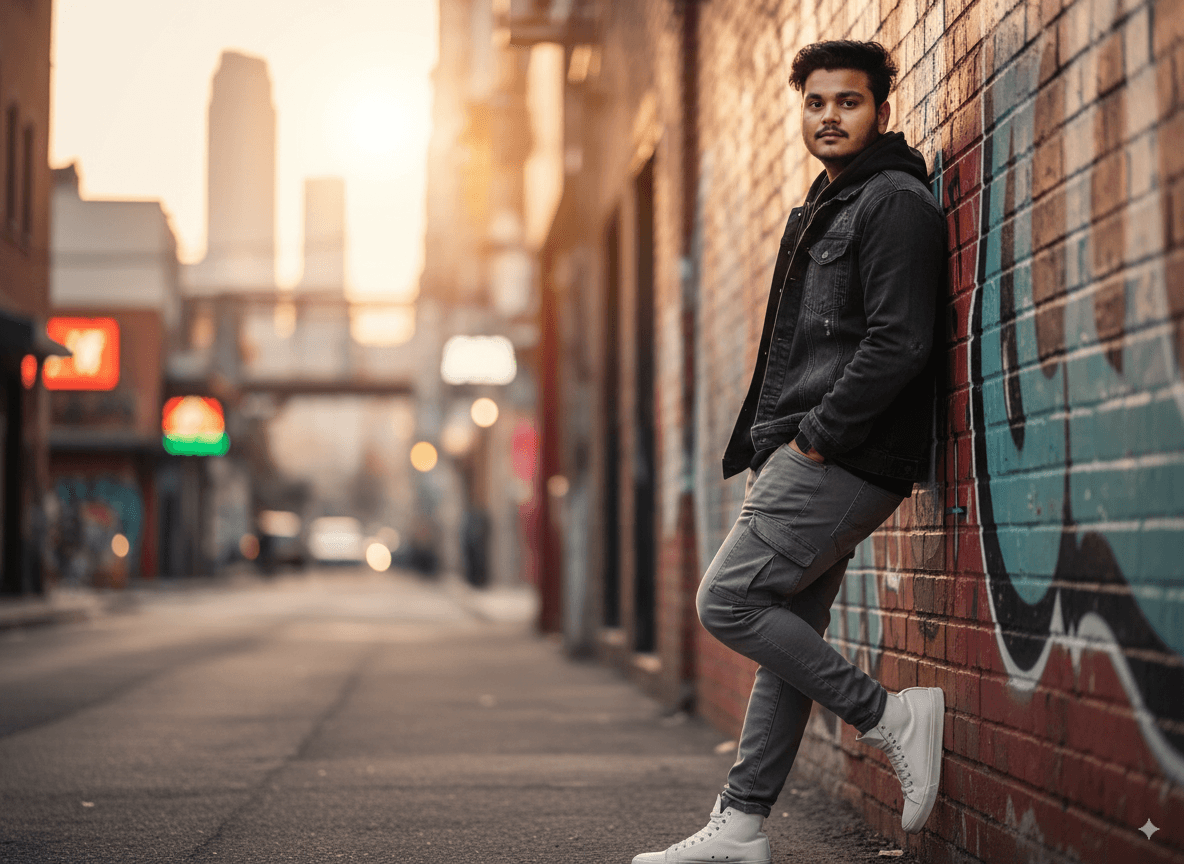 Urban Explorer AI Prompt – Golden Hour Cinematic Portrait