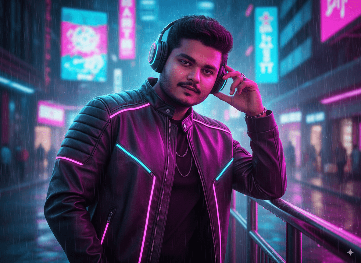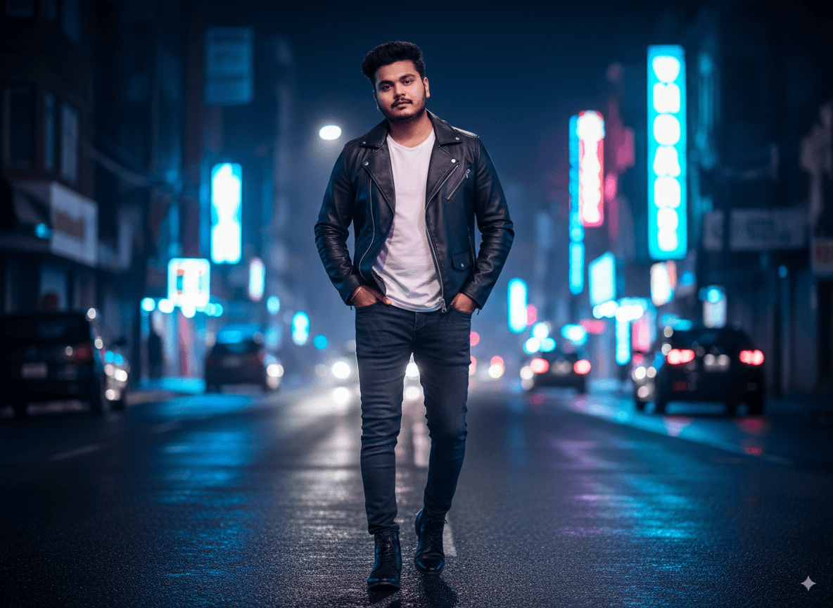 Neon-Lit Urban Street AI Portrait: Hyper-Realistic Night Walk
