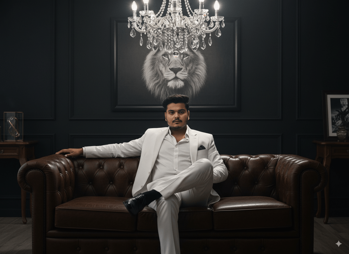 Hyper-Realistic Mafia Boss Cinematic Portrait in White Suit