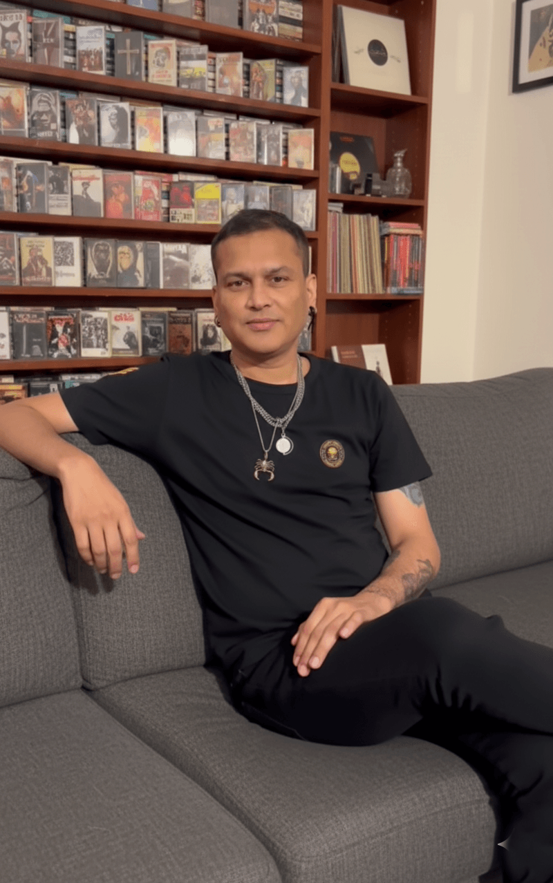 Zubeen Da sitting on couch reference photo for AI prompt